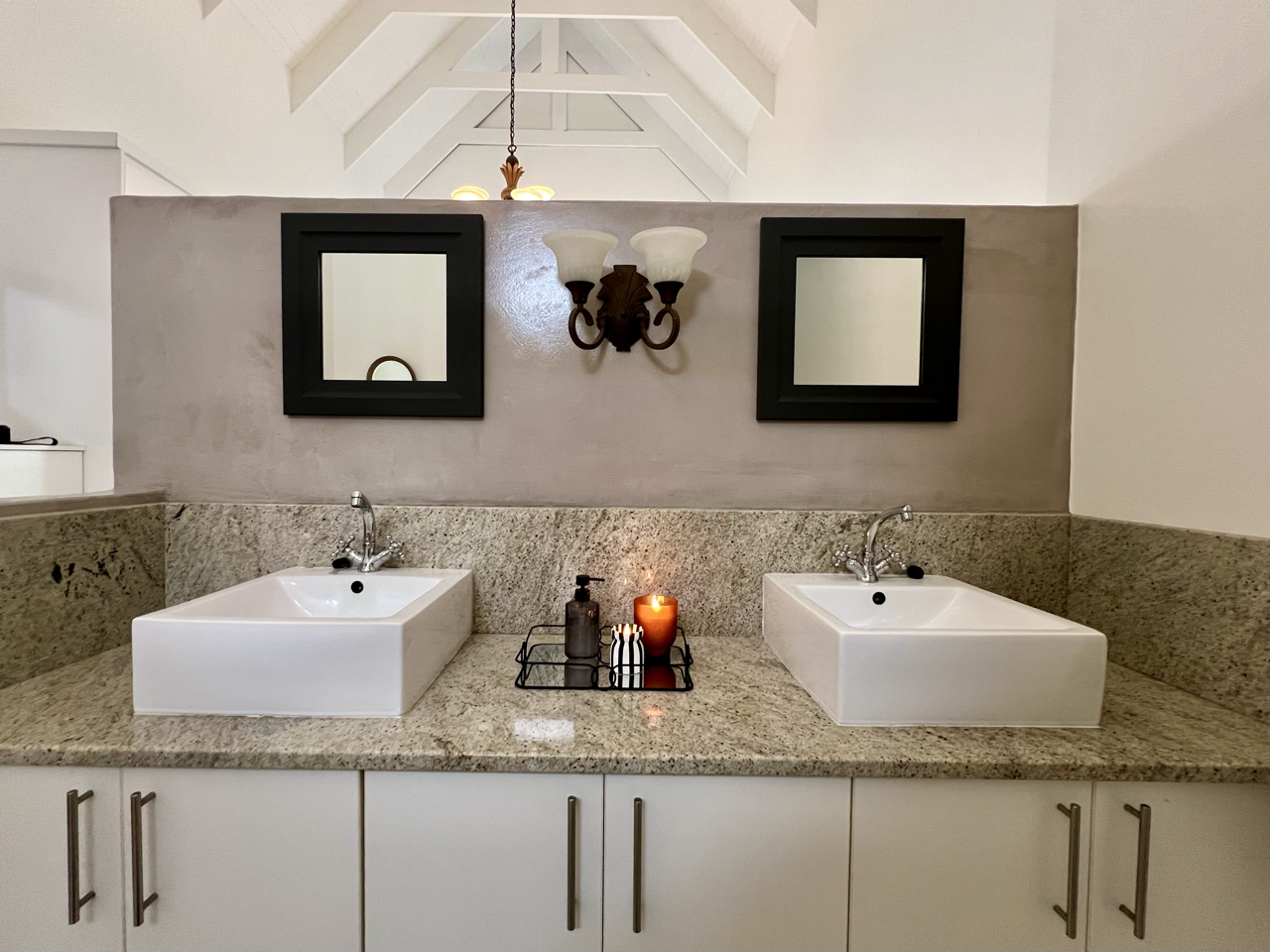 Double volume space with queen size bed and full bathroom (walk in shower, bath with jets, double vanity, toilet, handicap-friendly)