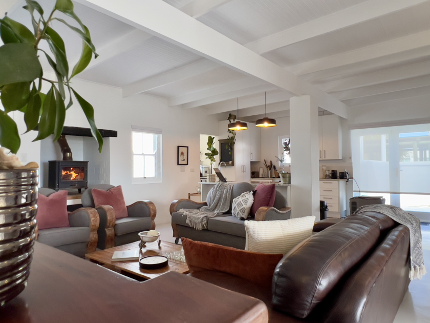 Kitchen is equipped with Nespresso machine, kettle, microwave, electric oven, gas hob, fridge/freezer, with dishwasher and top-loader washing machine in the scullery. All crockery and cutlery supplied.
